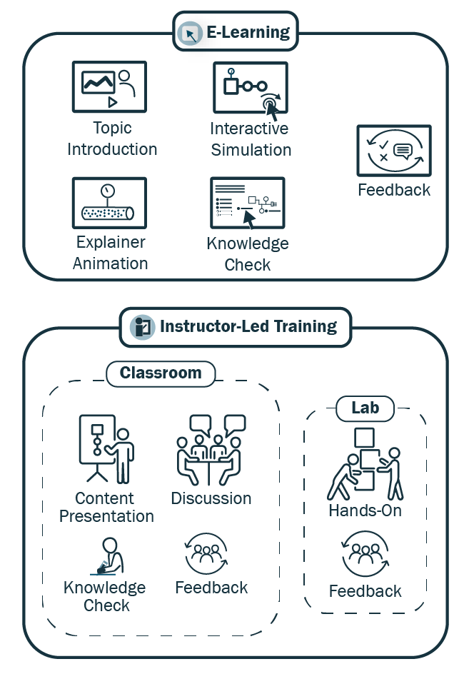 | Instructor onboarding | The instructors were part of the SME team so that they were familiar with the structure and content and had buy-in when the courses were complete. |